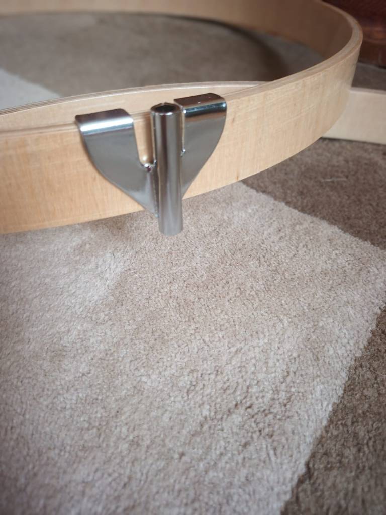 Zaczep na obręcz bębna wykonany z blachy stalowej 1,6 mm, chromowany, odpowiedni do powierzchni prostej na obręczy.